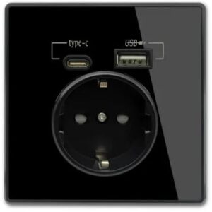 Priza electrica 230V, negru, 1 port USB Type C, 1 port USB A, 5V/2100mA, incarcare telefon, tableta.