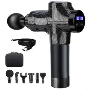 Pistol de masaj profesional, portabil, afisaj baterie si reglare intensitate touch screen, 6 capete de schimb, incarcare USB tip C, utilizare 4-6 ore