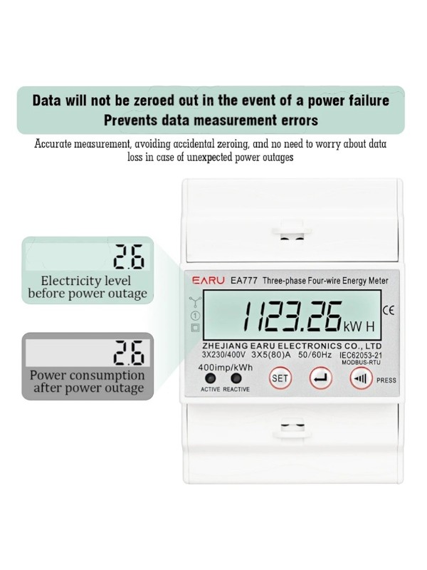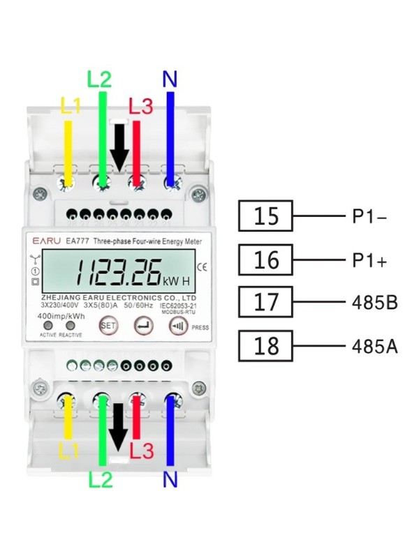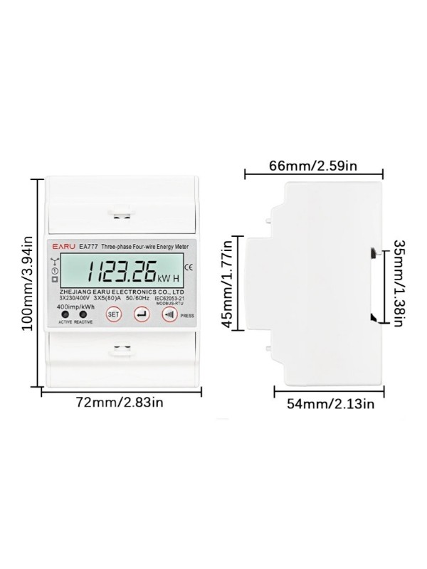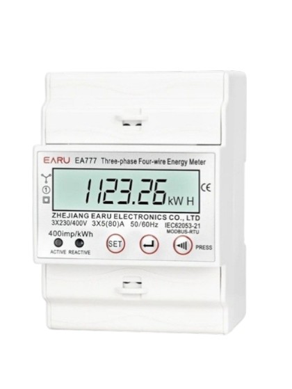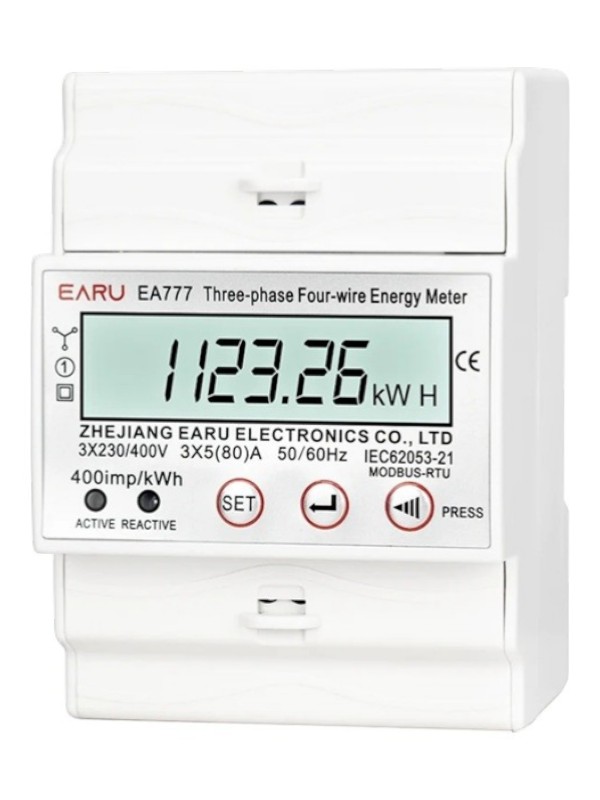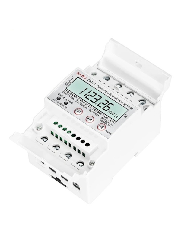 Contorul electric trifazat EA777 3x230V / 400V este un contor digital multifunctional proiectat pentru masurarea precisa a energiei electrice in instalatii trifazate. Acest dispozitiv utilizeaza tehnologie microelectronica moderna si circuite integrate de inalta performanta pentru a asigura masuratori stabile si precise ale energiei electrice active si reactive.