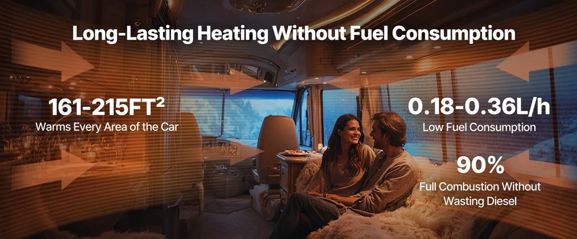 - Incalzire eficienta cu consum redus; ideal pentru pastrarea confortului in vehicule in timpul noptii sau in conditii reci.