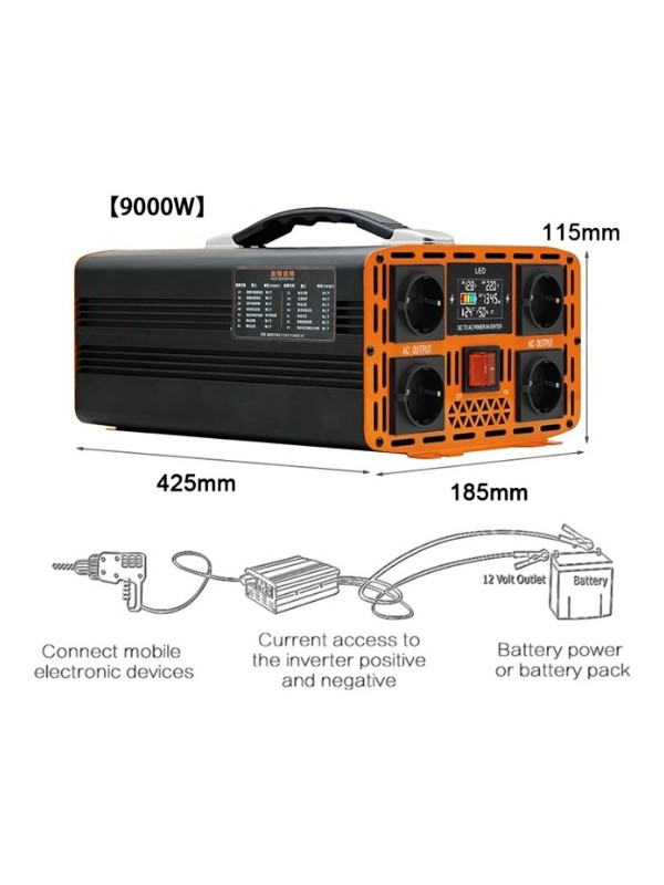 - 9000W: 425 x 185 x 115 mm | 6 kg